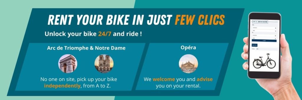 We have three rentals points located near the Arc de Triomphe, Notre Dame and Opéra. Three best places to start your bike tour and then join the main attractions of Paris, like The Eiffel Tower.
